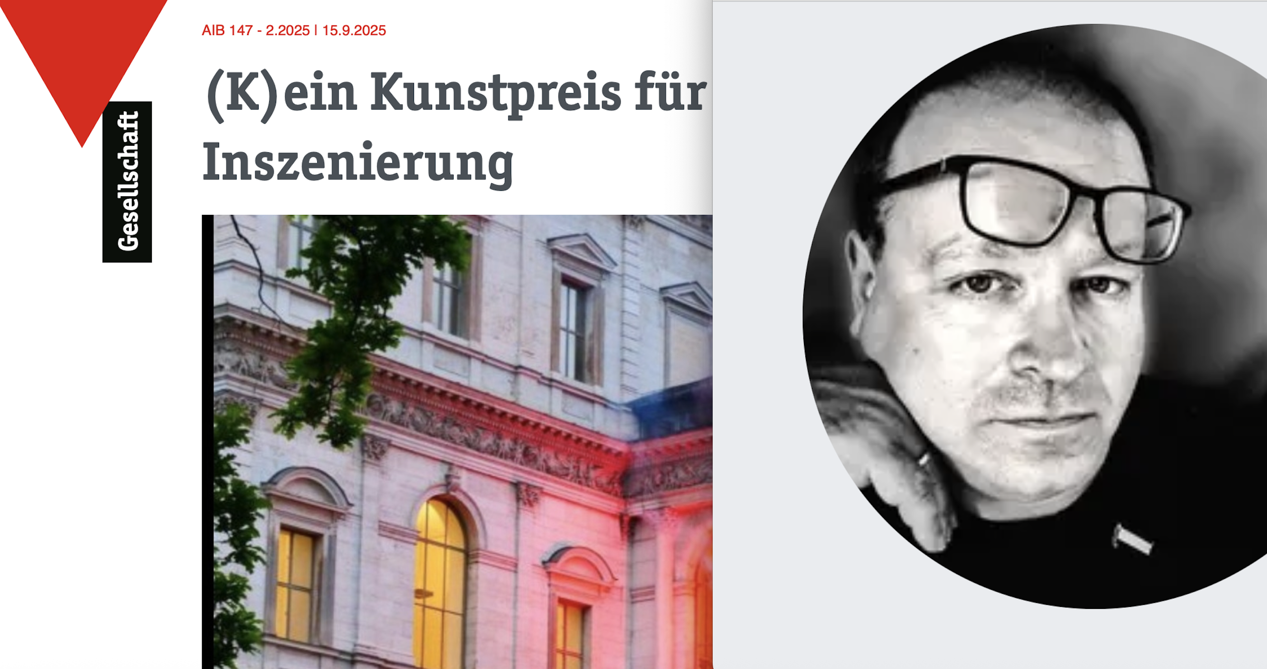 „Komplett die journalistische Kontrolle verliert kurz darauf der Text von ‚RA Dirk Schmitz‘ auf dem Blog von Alexander Wallasch mit dem Aufmacher: ‚Markus Söder und Cem Özdemir sind für Verleihung verantwortlich (…) Inhaftierte Antifa-Terroristin erhält trotz Mordversuch Bundeskunstpreis‘ und vermutet eine ‚Solidaritätsbekundung der Akademie an ein Mitglied einer kriminellen Antifa-Mordtruppe‘.“