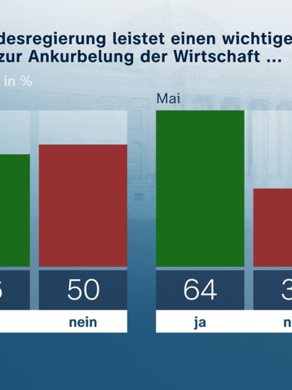 ZDF-Politbarometer Oktober I 2025: / Wirtschaftsankurbelung: Zweifel an Problemlösungsfähigkeit der Regierung / Große Unterschiede bei der persönlichen Relevanz der Wiedervereinigung. Inzwischen ist allerdings die Zuversicht in die Problemlösungskompetenz der Bundesregierung deutlich zurückgegangen: Jetzt glauben nur noch 46 Prozent, dass die Bundesregierung einen wichtigen Beitrag zur Ankurbelung der Wirtschaft leisten wird, 50 Prozent sehen das nicht so (Rest zu 100 Prozent hier und im Folgenden jeweils „weiß nicht“). Im Mai, zu Beginn ihrer Regierungstätigkeit, hatten sich noch 64 Prozent optimistisch geäußert und nur 32 Prozent skeptisch.