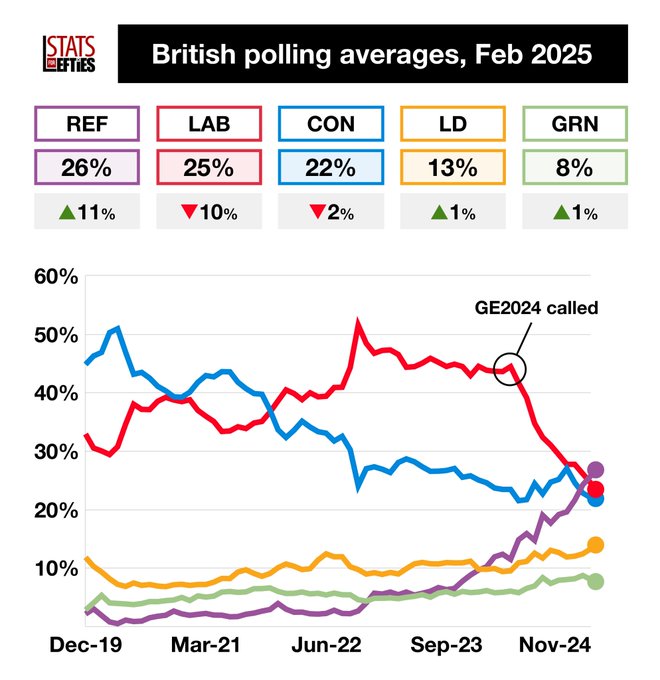 Die politische Revolution im Vereinigten Königreich schreitet voran. Reform UK ist im Durchschnitt der unterschiedlichen Meinungsumfragen nunmehr die stärkste Partei: