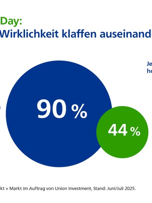 Das Marktforschungsinstitut Produkt + Markt hat im Juni und Juli 2025 im Auftrag von Union Investment 1.006 Erwerbstätige in Deutschland befragt. Die Befragten nahmen an einer Online-Umfrage teil und konnten sich Zeit und Umgebung der Bearbeitung selbst aussuchen. Bei Umfragewerten, die sich nicht zu 100 Prozent addieren, gibt die Differenz den Anteil der unschlüssigen Befragten an.